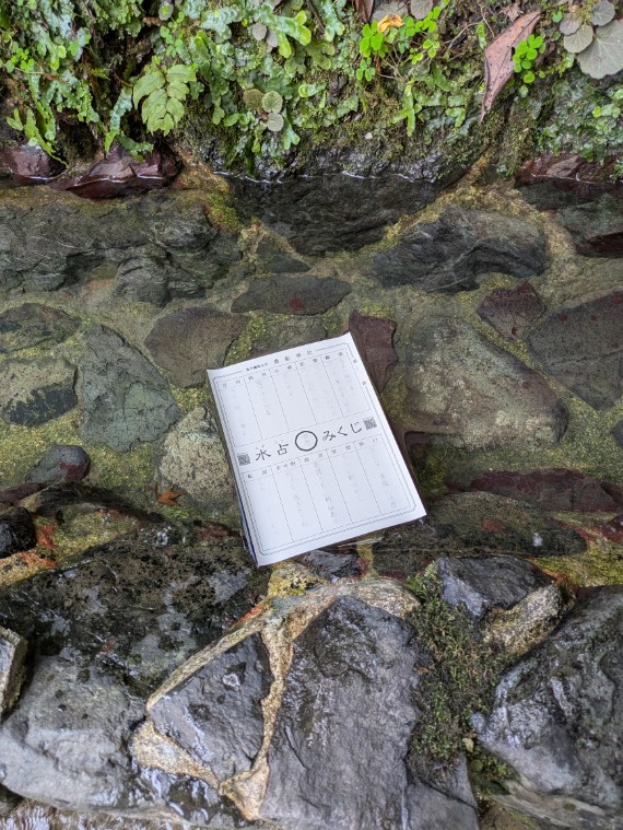 本宮には御神水が湧き出ており、「水占みくじ」という水に浮かべると文字が浮かび上がる神水を使ったおみくじが有名です。