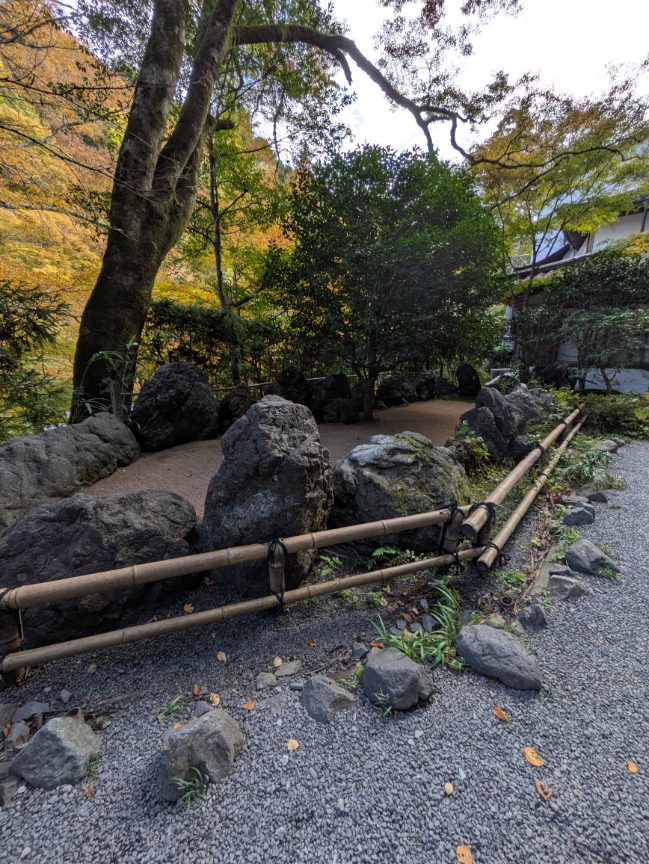 昭和40年に造られた石庭で、使われている石はすべて貴船川の貴船石で石組みされております。