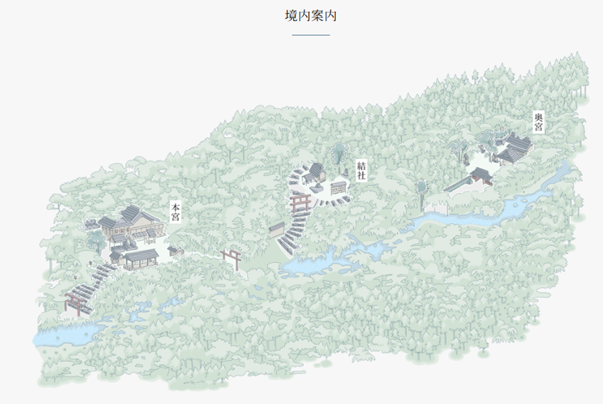 本宮と奥宮の中間に位置するのが、結社です。本宮から徒歩5-7分ほどの場所にありますが、ぼーっと歩いていると見逃してしまいそうになるほど主張の小さいお社です。