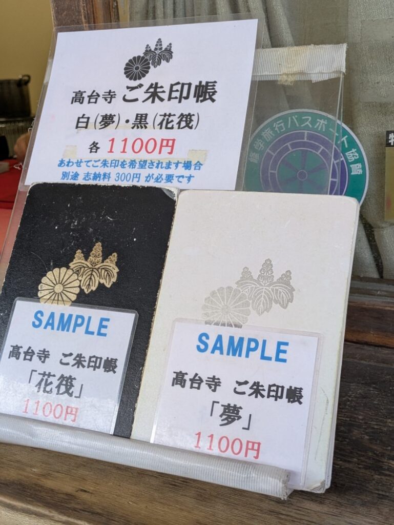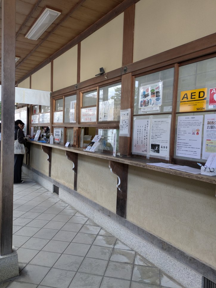 御朱印授与書は、高台寺の拝観料を納める隣の窓口で御朱印をいただくことができます。