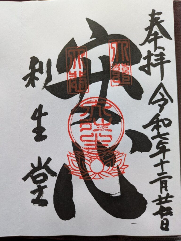 利生堂は「人が死から目をそらさず、命を見つめて心の安らぎ(安心)を得るための場所」として建立されたそうで、この御朱印もそのテーマが反映されたものなのでしょうか。。