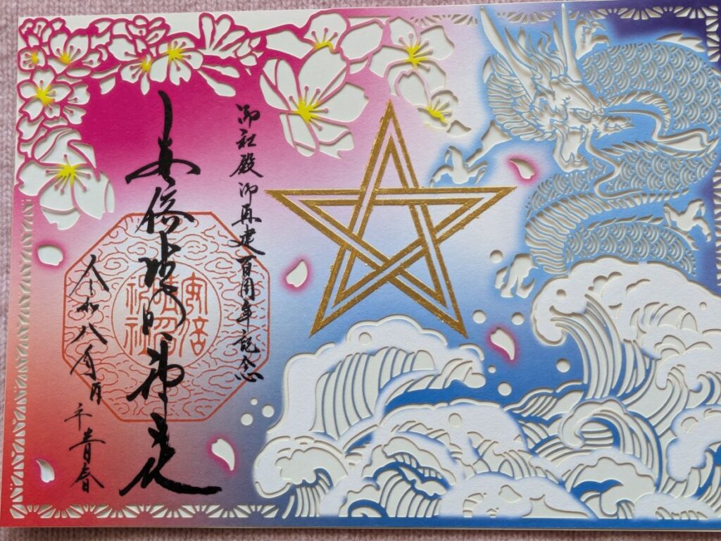 御社殿御再建百周年を記念した「五芒星(ごぼうせい)の切り絵特別御朱印」も無事に授与いただけて感無量!