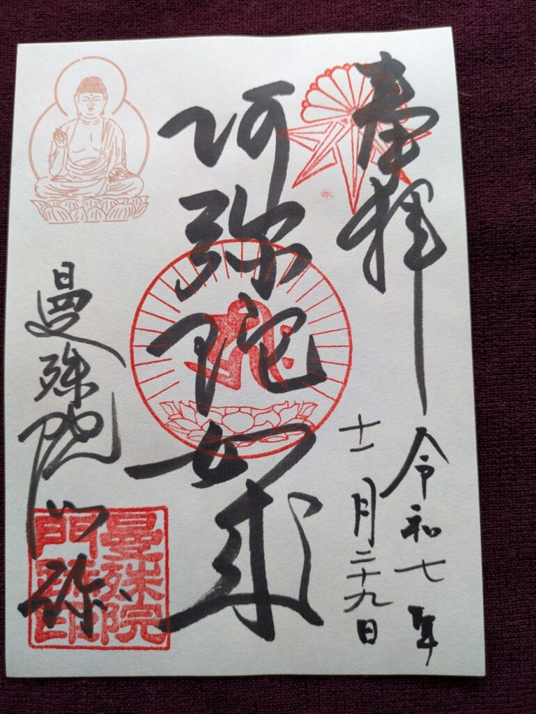 御朱印の左上には阿弥陀如来の御影を象った金色のスタンプが押されています。